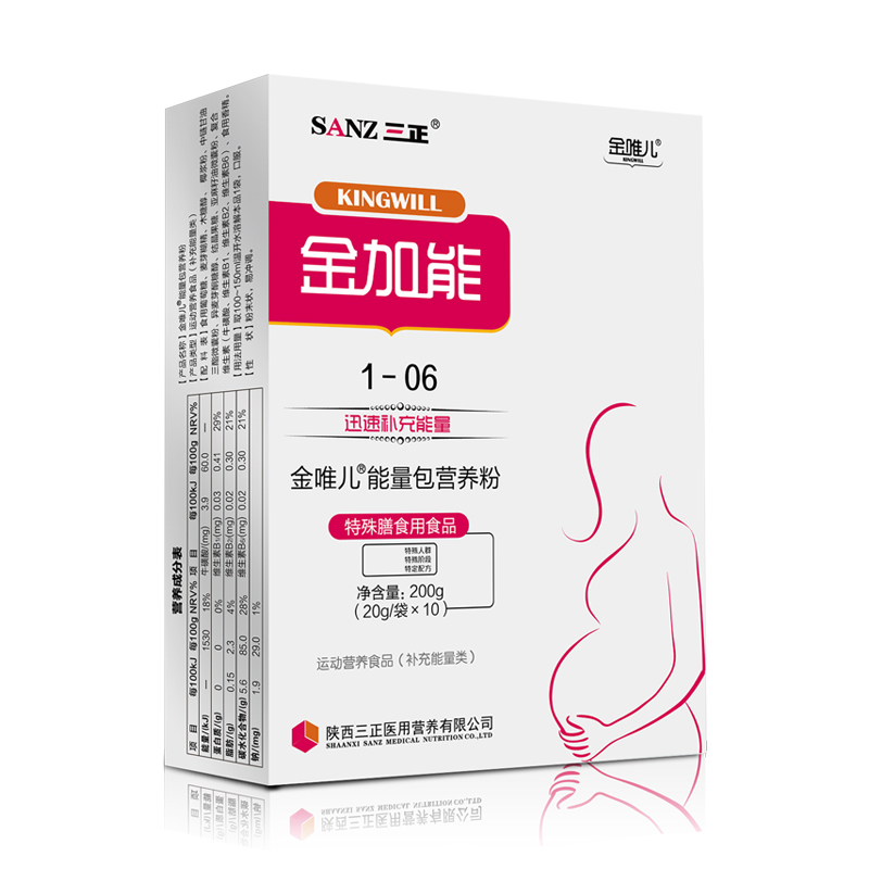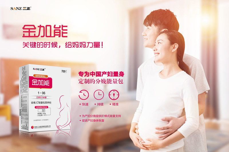 金加能分娩能量包是由陕西三正医用营养有限公司联合中国营养学会、西安交通大学等科研机构的营养学专家、妇产科专家,结合临床实践,依据中国营养学会推荐的《中国居民每日膳食营养素摄入量》(DRIs)标准及中华人民共和国食品安全国家标准GB24154-2015,结合现代制药新技术,精心研制出的一款专为分娩妈妈提供分娩能量的特殊膳食用食品。它能够为自然分娩产妇提供阶梯式、全面、安全、快速的能量补充,同时能够补充产妇分娩过程中容易损耗掉的营养素,服用方便,是国内首个医用级帮助妈妈顺产、缩短产程的分娩能量包。可有效避免因产力不足造成的难产、胎儿窒息等突发状况,填补了国内这一专业领域的空白。